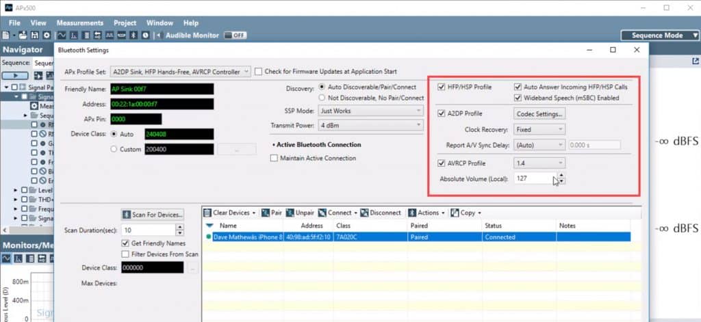 Setting Up Bluetooth Duo in APx500 Software