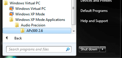 APx500 v2.6 and earlier run normally on 32-bit Windows 7, but must be run in “XP Mode” on 64-bit Windows 7. If you can’t simply upgrade to the latest version of APx500 (you are running a custom .NET application tied to an earlier API, for example), follow the instructions below to install and run in “XP Mode:”