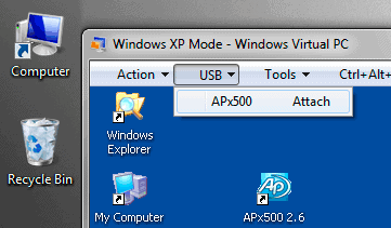 - Start the Virtual PC in XP Mode. From within the Virtual PC window, install the APx500 control software.